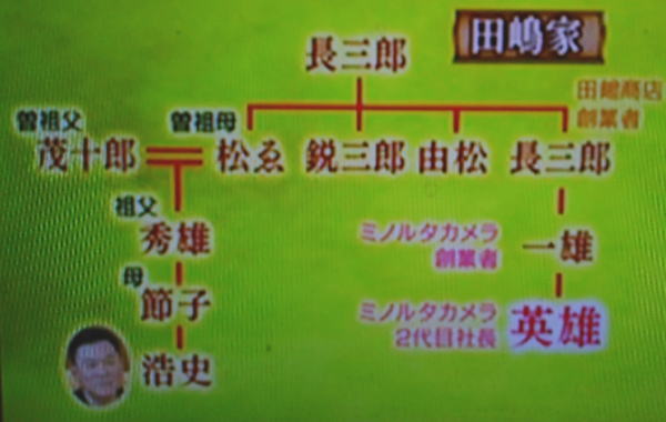 親戚にはミノルタカメラの創業者、2代目もいる。